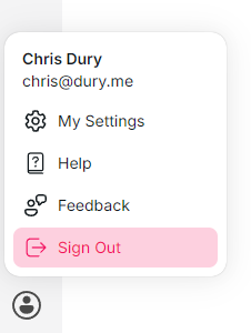 To sign out of Portage, click the avatar icon at the bottom of the left-side menu, and then click "Sign out":