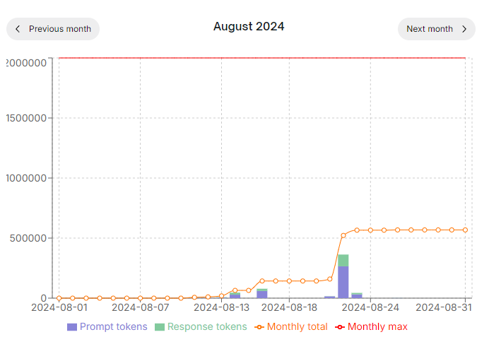 On this page you can review your token consumption: