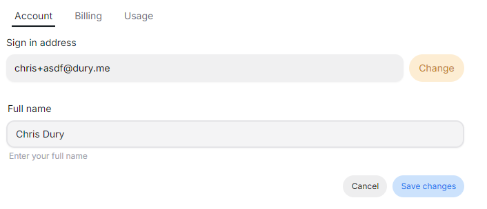 - Sign in Address: If you want to change this, please get in touch with support